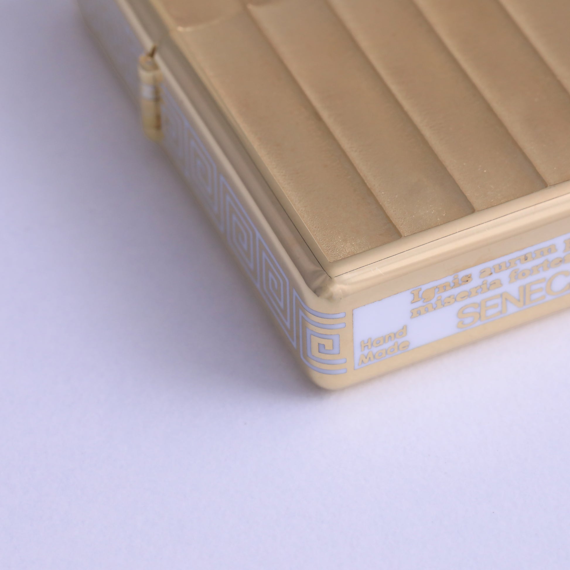 The lighter features a meaningful quote by Seneca that reflects the spirit of the Eterna Collection: “Ignis aurum probat, miseria fortes viros” (Fire tests gold, adversity tests strong men). This philosophical message makes the lighter not just an accessory but a work of art with profound meaning.