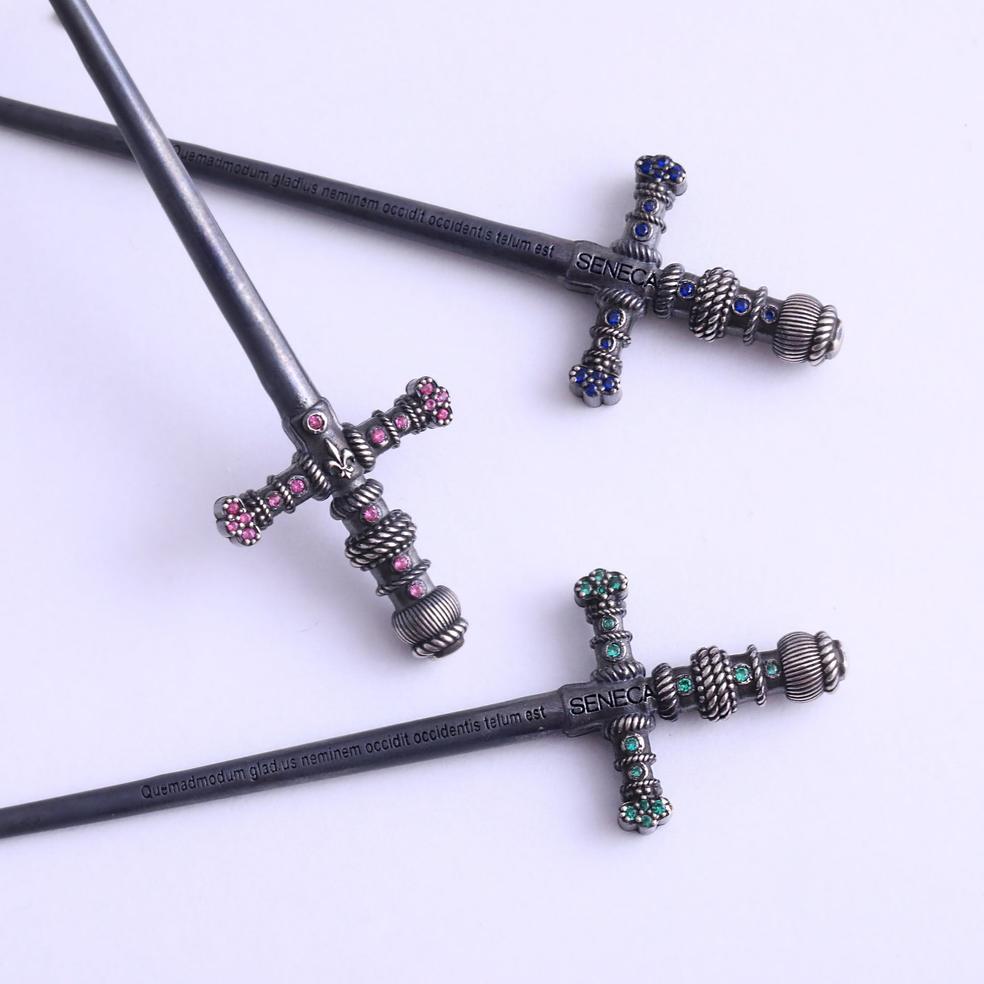 A meaningful quote by Seneca, reflecting the spirit of the Eterna Collection, is engraved on the cigar pin: “Quemadmodum gladius neminem occidit, occidentis telum est” (A sword kills no one; it is the hand of the one who wields it that kills). This philosophical detail gives the product a profound meaning.