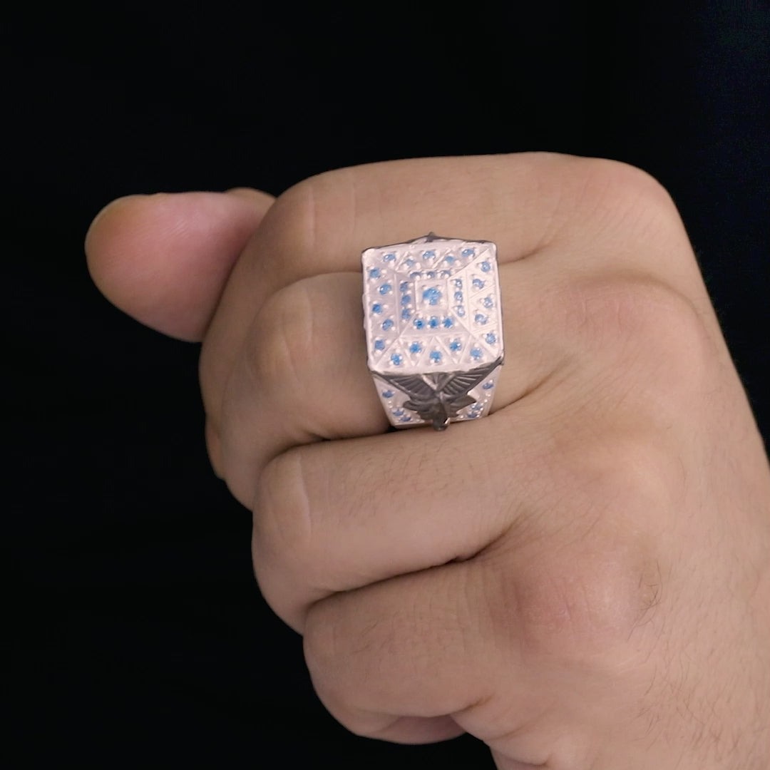 This model is prepared with White Gold plating on 925 sterling Silver, completely covering its surface. sparkling blue zircon stones It presents a magnificent stance thanks to the design embroidered on the body. Leaf motifs offer an elegant touch inspired by nature and give the ring an artistic character.