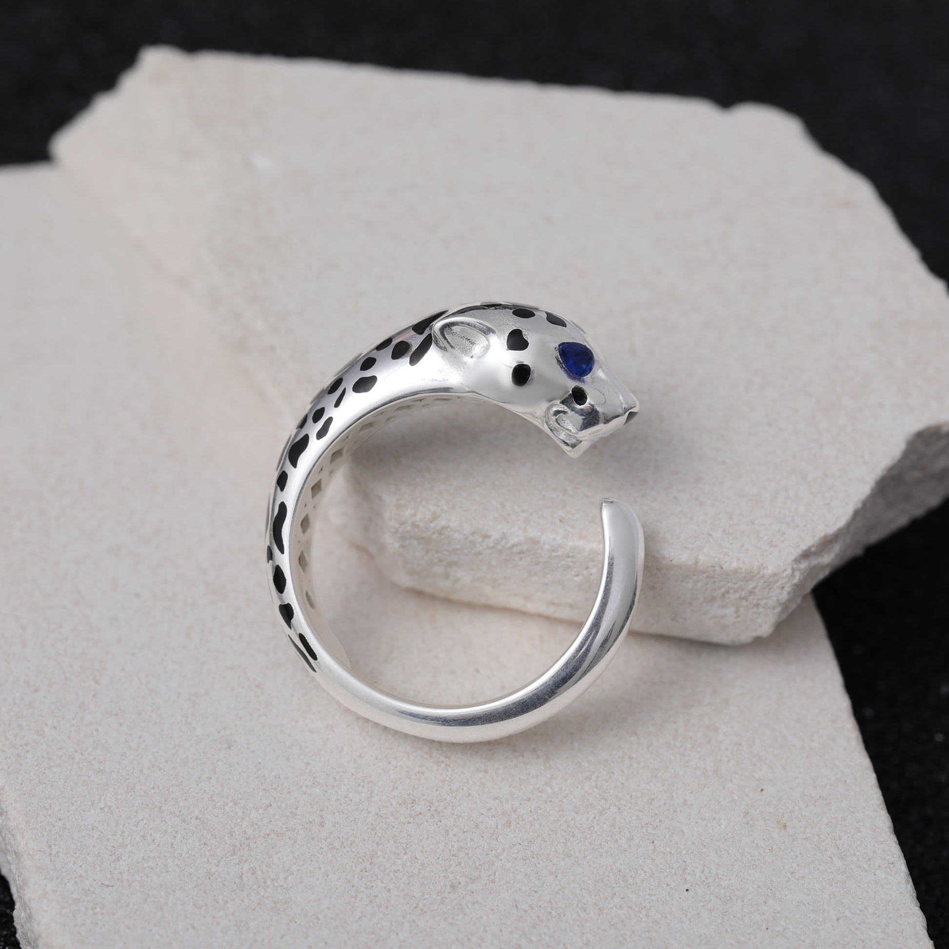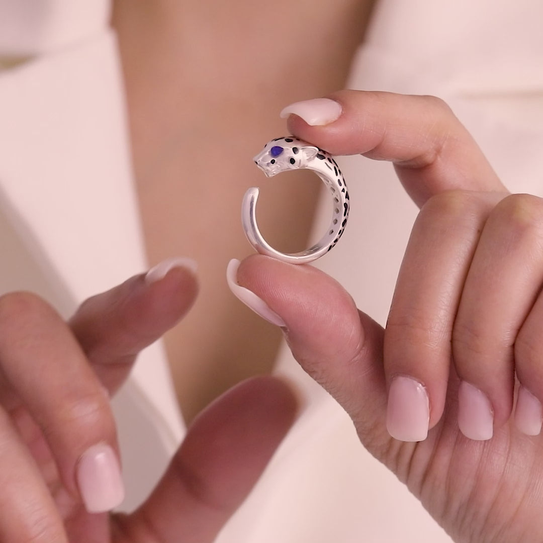 This unique panther ring, a symbol of power and elegance, is crafted from 925 sterling silver with White Gold plating.