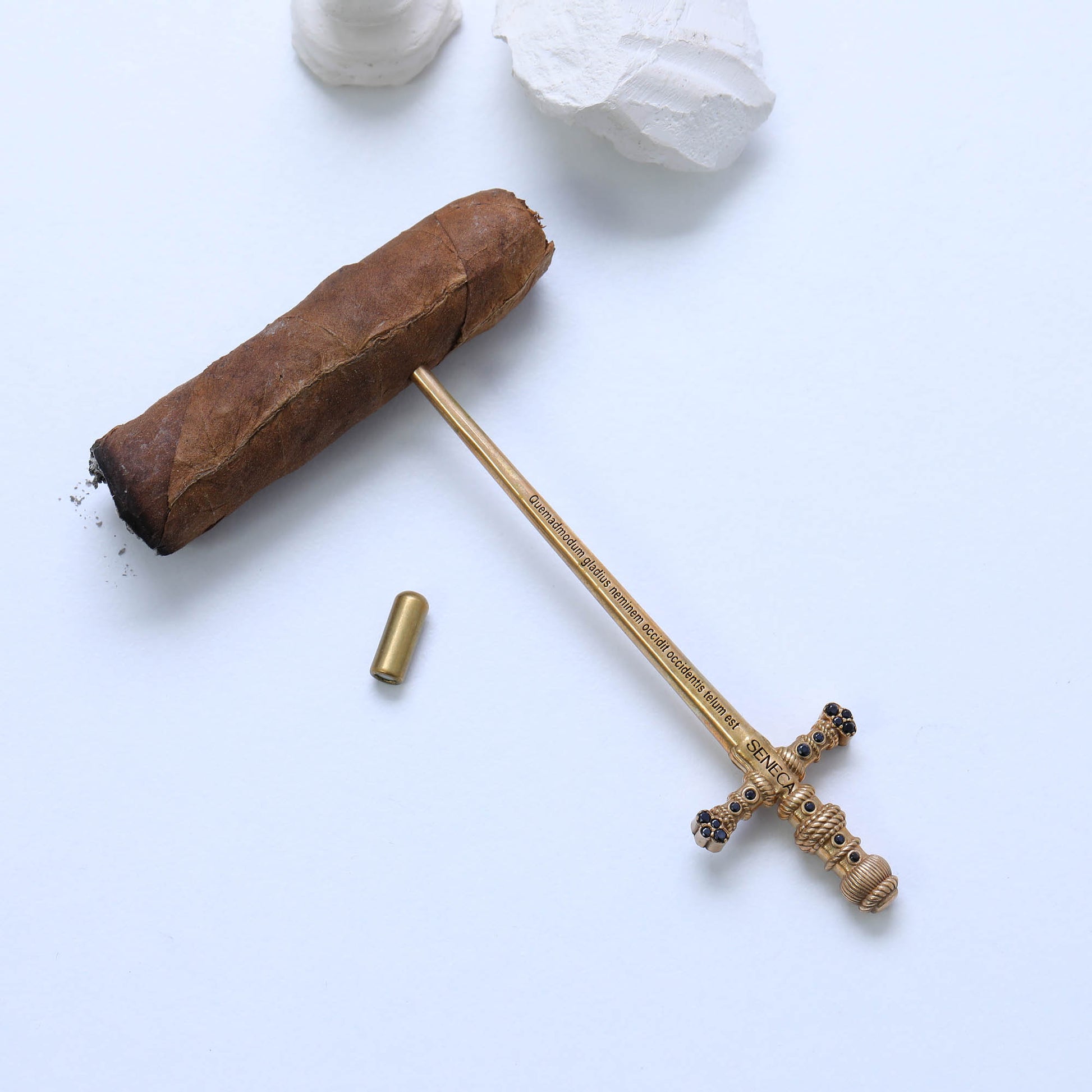 Gücün, iradenin ve zarafetin sembolü olan kılıç formundan ilham alan Seneca Jewelry, puro tutkunları için anlam dolu bir obje tasarladı: Eterma Bronzo Puro İğnesi